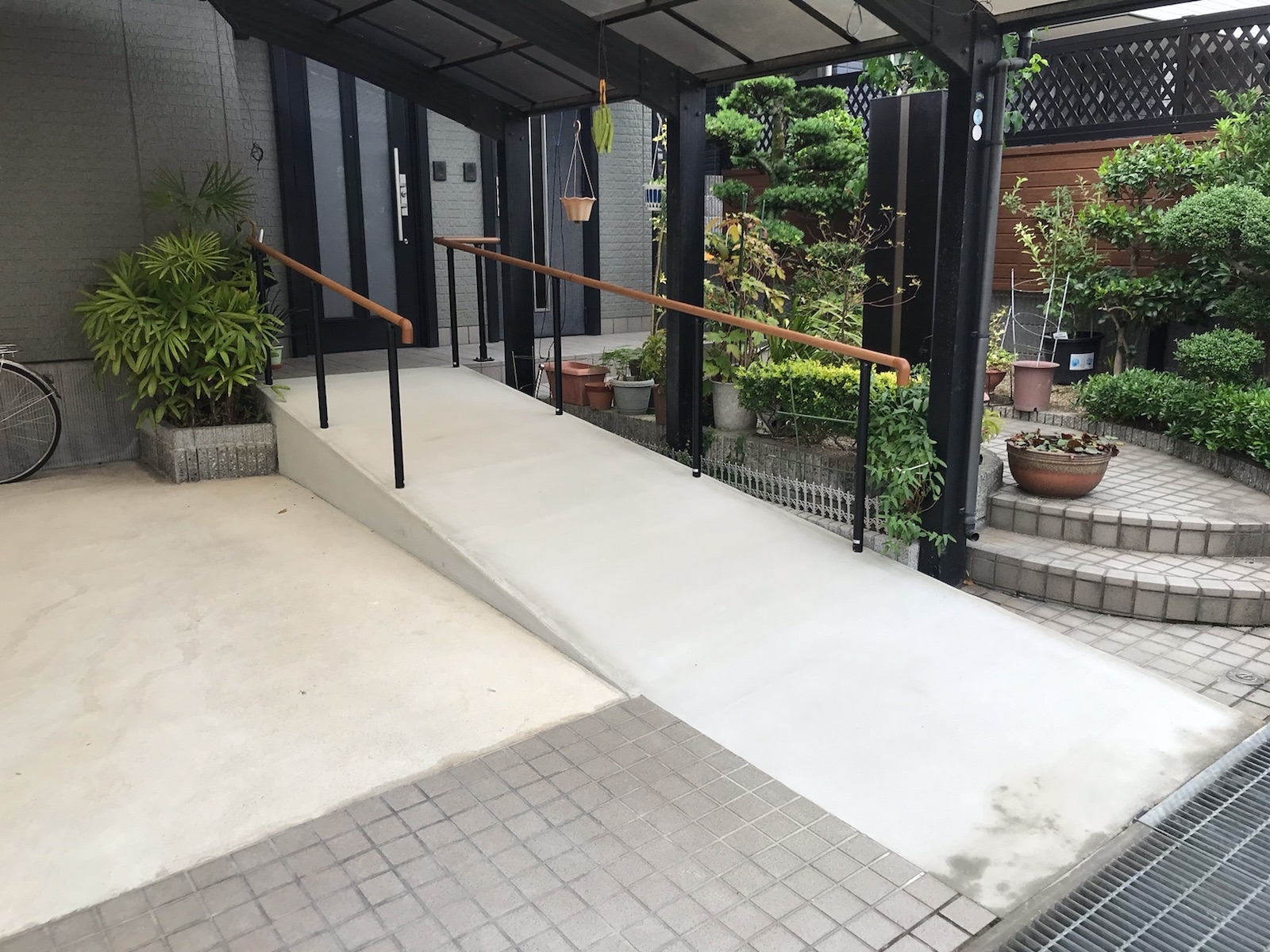 床のかさ上げ、スロープの設置、段差の撤去等により、つまずきや転倒の防止、移動の安全性向上を目的とします。