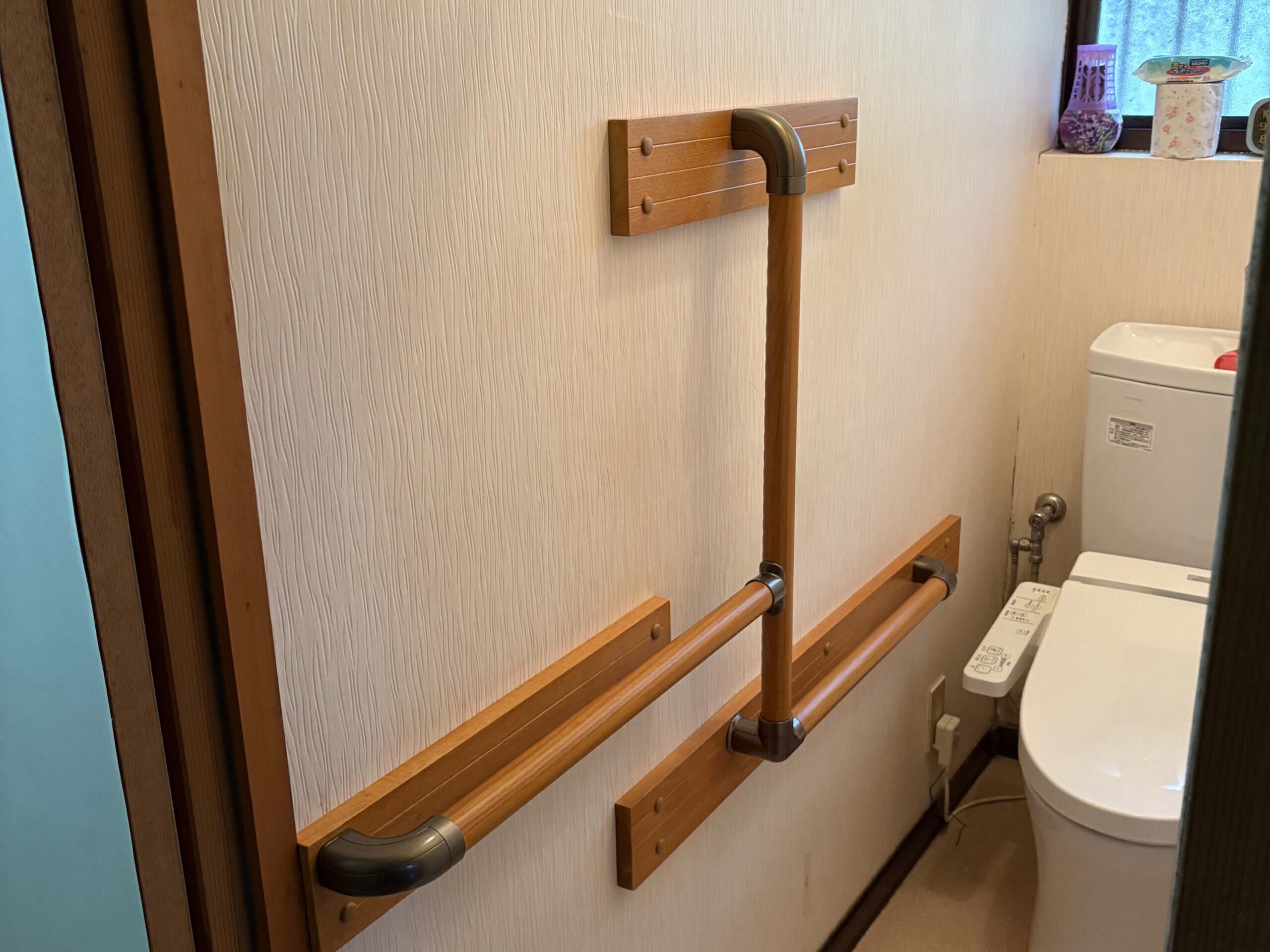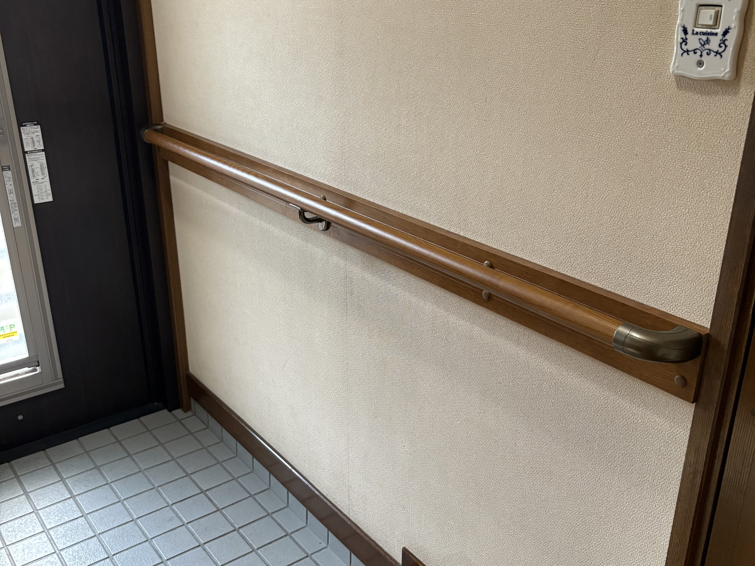 居室、廊下、階段、玄関、トイレ、浴室などに手すりを設置する住宅改修です。
